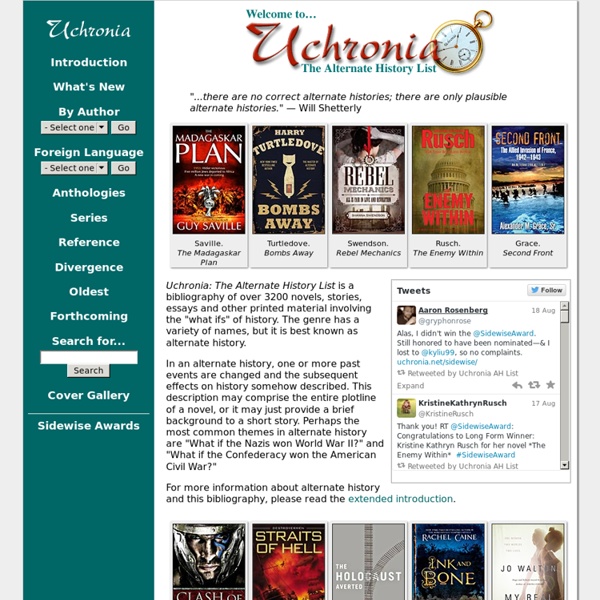 Uchronia: The Alternate History List is a bibliography of over 3200 novels, stories, the alternate history list is a bibliography of over 3200 novels, stories, essays and other printed. material involving the what ifs of history. Recent Searches: uberman snl video uberman almost super human ... Return Doc